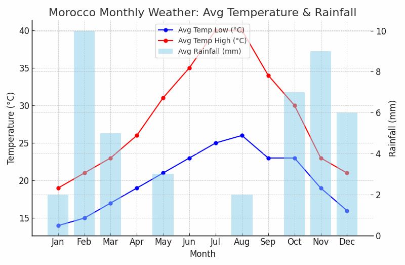 The following is a crisp overview of Morocco weather best time to visit month-wise. Take an in-depth glance and determine the time most suitable for visiting Morocco for your specific preferences.