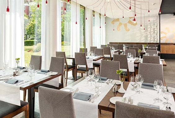 The modern 3-star-superior-hotel Dorin An der Messe Basel within striking distance to the fair ground is ideally located for business traveler. Furthermore it offers excellent transport connection by bus and tram which makes the Dorint Hotel the perfect starting point for a discovery tour though Basel. All 171 light flooded rooms comply with modern standards, are partly equipped with air condition and outfitted with an extra large desk, which allows you to prepare yourself for a successful day. A comfort you will appreciate in single and double rooms; as well as apartments alike.