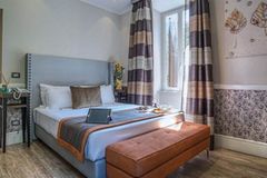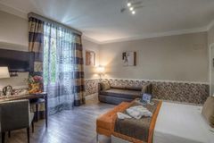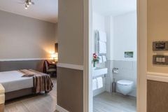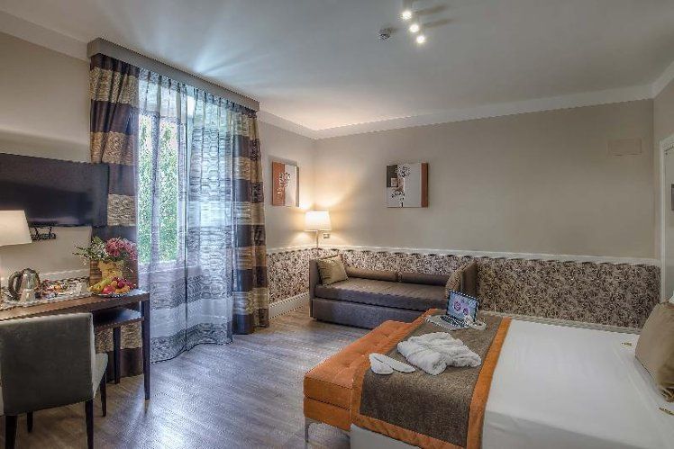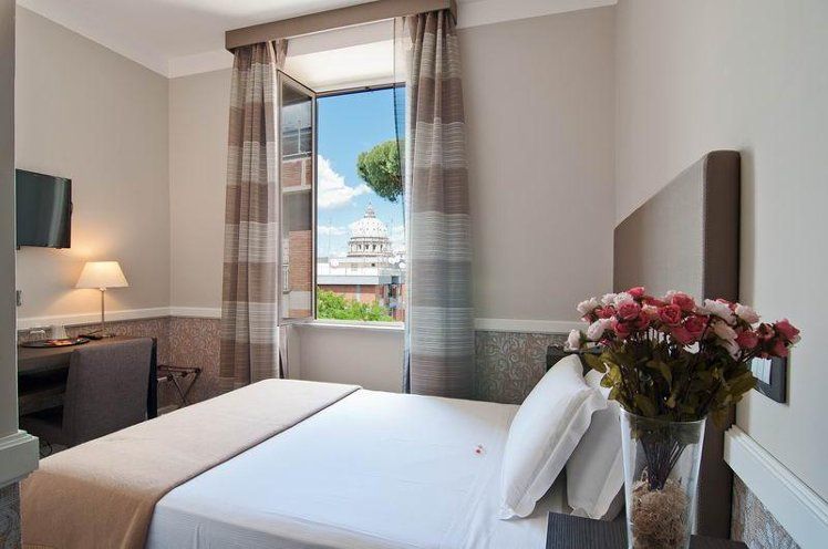 This boutique hotel enjoys an unbeatable location in the centre of Rome, a few steps from the imposing St. Peter’s Basilica. Its strategic location in a quiet and convenient Monte del Gallo neighbourhood, modern design and welcoming atmosphere make it the ideal choice for those who want to live the Eternal City in maximum comfort. The structure has a unique style, romantic and modern, able to reproduce the comfort and cosy atmosphere of Roman nights, and the great beauty enclosed in them. The spacious and sun-lit rooms are elegant and well-equipped with the most modern facilities to guarantee an enjoyable stay. This magnificent establishment offers a flavourful American-style breakfast in a charming dining room featuring modern and refined design. Pets are welcome and the friendly multilingual staff will be happy to assist guests on their Roman holiday. The rooftop with view over Vatican is perfect to taste high quality italian food and drinks.Green friendly Hotel, with a new initiative:buy our reusable bottle adn water will be free for your whole stay!