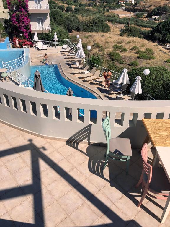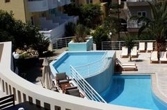 Warm and friendly, the Pelagia Bay hotel forms an adorable “hamlet” of 5 small buildings clustered around a swimming pool and a typically luxuriant Greek island garden. You are invited to enjoy the peace and tranquillity of this place, so good for relaxing and unwinding.The hotel offers concierge services(hire an iron, a vot, a vehicle) hotel transfer from the airport of Heraklion against a fee, a games room (with billiards, board games), free Wifi/Internet access, a lounge bar, a restaurant-terrace and a swimming pool. Sun loungers and parasols are freely available. The charming hotel has 39 bedrooms and apartments, each able to accommodate between 2 and 5 people.