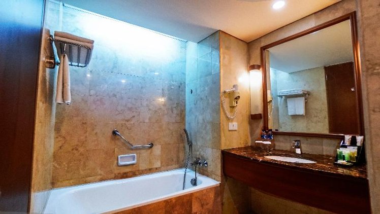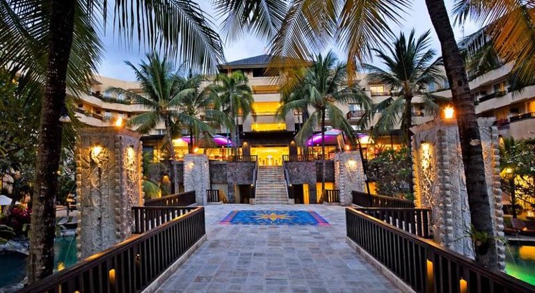This hotel is located beside beautiful South Kuta Beach. Conveniently situated, it is just a 5-minute drive from the airport and nearby plenty of shopping and entertainment opportunities, as well as bars. The popular Kuta Square shopping centre lies on the hotel's doorstep. The luxury hotel welcomes in a foyer and offers a pleasant café and a cosy pub. In the evenings, guests may pay a visit to the hotel nightclub. For business conferences and meetings there are conference facilities available. The comfortable, first-rate rooms comprise top quality fittings and afford terrific views out over the sea and the hotel's tropical gardens. In the tropical outdoor complex there is a swimming pool, a poolside snack bar and sun loungers. The extensive complex includes pretty pavilion areas, providing ample space in which to relax or enjoy water sports and other activities.