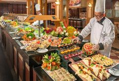 A Continental buffet breakfast with live cooking stations. Lunch and dinner is a buffet, too. There are themed buffet dinners three times a week, as well as vegetarian and live cooking options. You can also dine at the Themed restaurant and the Italian restaurant – you’ll need to book a table in advance. Snacks at set times.Local alcoholic and non-alcoholic drinks available.