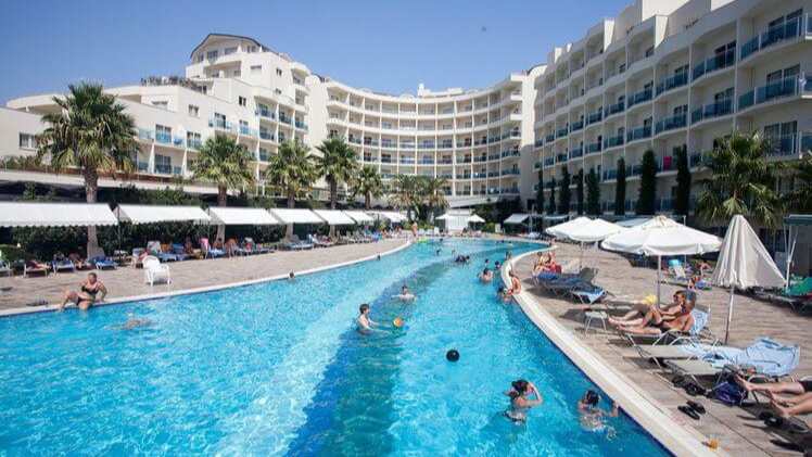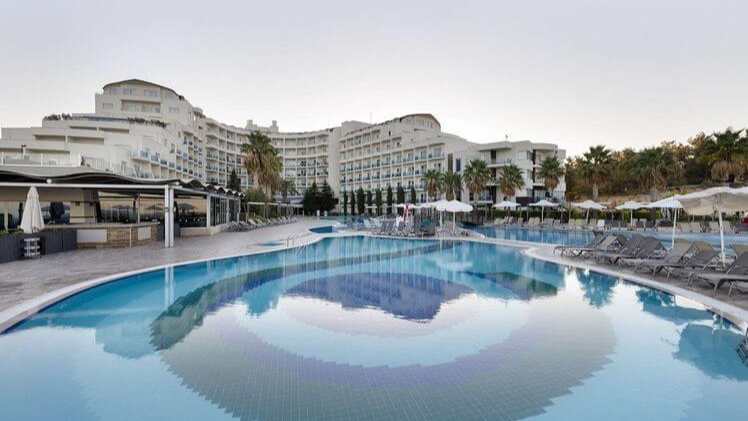 The 5-star resort is located in Kusadasi on Turkey’s west coast, set in lush gardens on the beach in the district of Izmir. Featuring 465 smart modern rooms and suites, as well as a major restaurant serving international buffet dishes, a bar, and an entertainment team offering daily activities and entertainment with live music, Relax and rest at the outdoor pool and sun deck, leave the kids at the kid’s club, rejuvenate at the Spa and Wellness Centre, work out in the gymnasium and participate in a variety of fun and sports activities, and visit the beautiful beaches. Book a stay at the well-equipped 5-star resort with facilities for a delightful seaside holiday for the entire family.