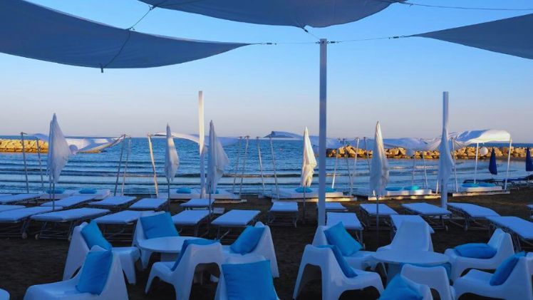 Sunbeds & Umbrellas Charged at the Beach