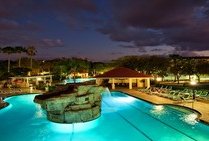 This hotel is located on Lake Cecil, in the heart of the Kissimmee tourist corridor just some 6.5 km from the entrance to Walt Disney World. Guests will find the nearest links to the public transport network, attractions (Medieval Time), shops and restaurants all within around 3.2 km of the hotel. It is roughly 4.8 km from the Premium Outlet Mall, around 9.7 km from the centre of Kissimmee and from Sea World and some 11.9 km from the Amtrak and Grayline stations. Orlando, with Universal Studios and the nearest nightspots, is around 24.1 km away and Cocoa Beach is some 96.5 km from the hotel.This resort is a Mediterranean-style resort and spa located just minutes from the excitement of central Florida's major attractions. 4 miles from Walt Disney Theme Parks and still offering the quiet relaxation of luxurious accommodation with a multitude of amenities and activities. Renovation was completed in 2011, this family-friendly resort hotel comprises a total of 416 rooms spread over 3 floors. All units include a kitchenette or full kitchen. Facilities on offer to guests at this air-conditioned establishment include a lobby area with a 24-hour reception and check-out service, a in room safe, spa and salon. The younger guests can enjoy the game room and the children's playground and there is a café, 2 pool bars and TGI Fridays Restaurant located at the front of the resort. Guests can take advantage of the room service and parking is complimentary. It is also possible to hire bicycles, jet ski's, paddle boats on the premises.