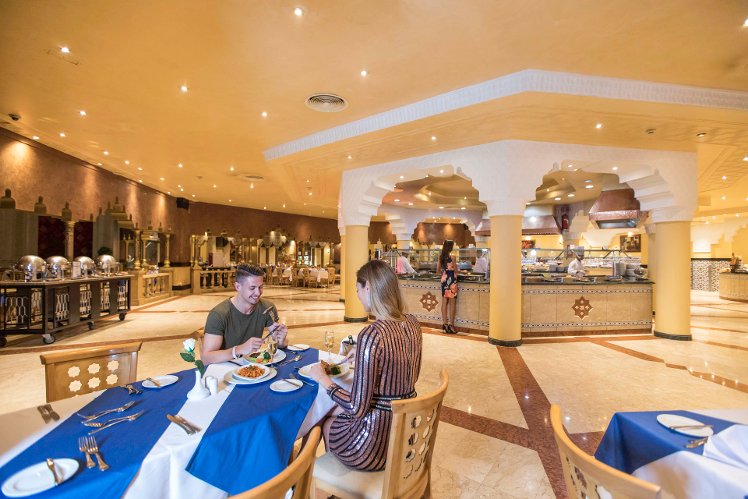 Catering As catering services the hotel offers all-inclusive and self-catering. Breakfast is offered American, continental or from the buffet. Enjoy your lunch from the buffet or as a set meal. Dinner is served à la carte. All Inclusive Light includes local alcoholic beverages. As part of the all-inclusive service, local alcoholic beverages (24h) are available around the clock and at no extra charge. For the meals, there are a buffet restaurant with terrace (Italian, Mediterranean, calorie-reduced, gluten-free and vegetarian dishes) and several bars, a 24h snackbar as well as the pool bar. Appropriate clothing is required for lunch and dinner.