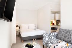 It boasts luxurious, spacious, modern and yet affordable apartments, some of them open to a balcony, which will become your personal address in the beautiful city of Thessaloniki. Apartments with contemporary décor and minimal style that add comfort and style to your stay and are ideally designed to accommodate travellers of all ages, from singles or couples to larger groups of people, as it offers apartments from 27 to 90 sq. m. The strictly non-smoking building, features free Wi-Fi and NETFLIX application on all flat screens of the building.